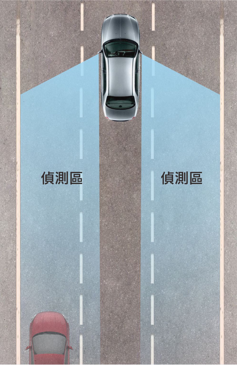 This system uses millimeter-wave radar sensors to detect objects on both sides behind the vehicle, providing early warning while driving normally or changing lanes.