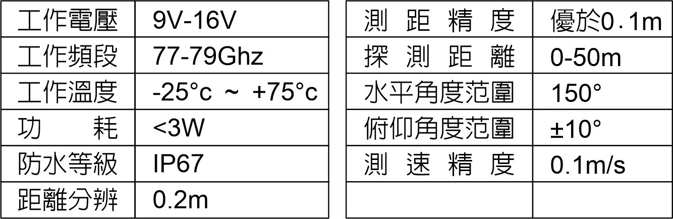 It can simultaneously calculate the speed, angle, and relative displacement of 64 objects, detecting targets up to 50 meters away.