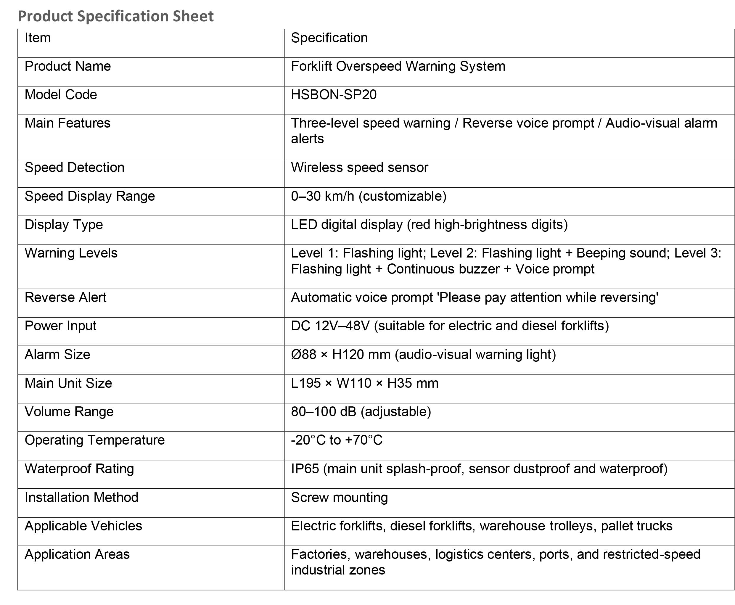 The intelligent overspeed warning system is specially designed for forklifts to monitor vehicle speed in real time.